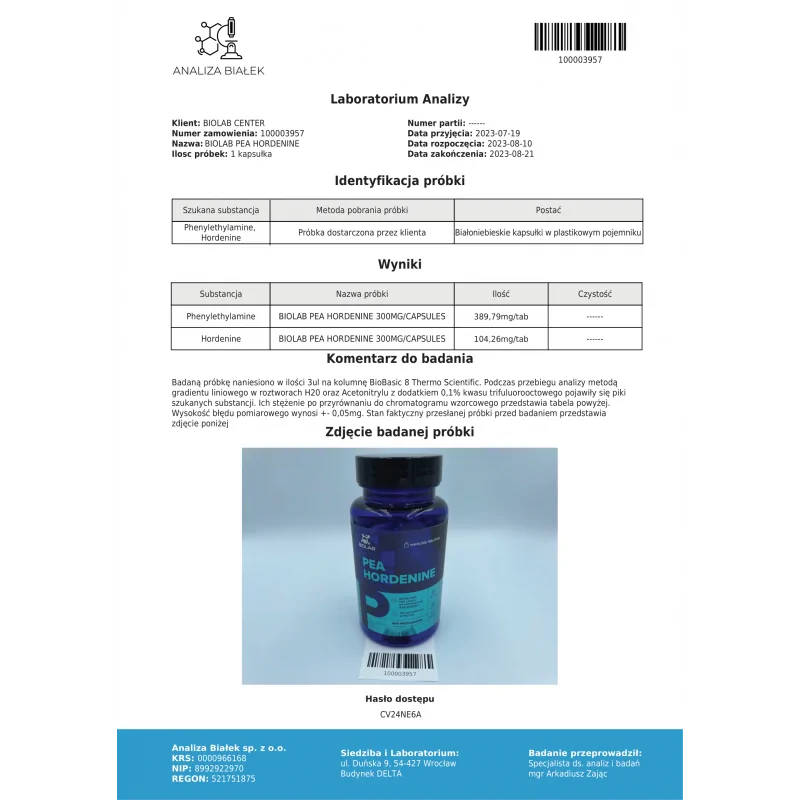 Sastāvs: Feniletalamīns (PEA) 200 mg + Hordenīns 100 mg