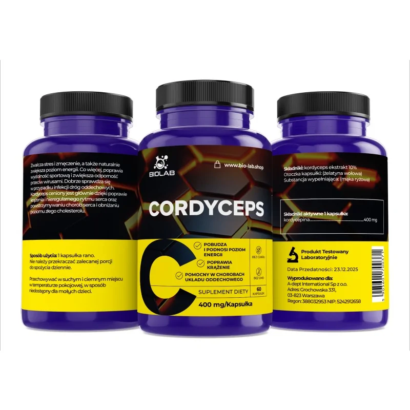 Sastāvs: kordyceps ekstrakts 10% kordycepīns 400mg, želatīna kapsula, rīsu milti.