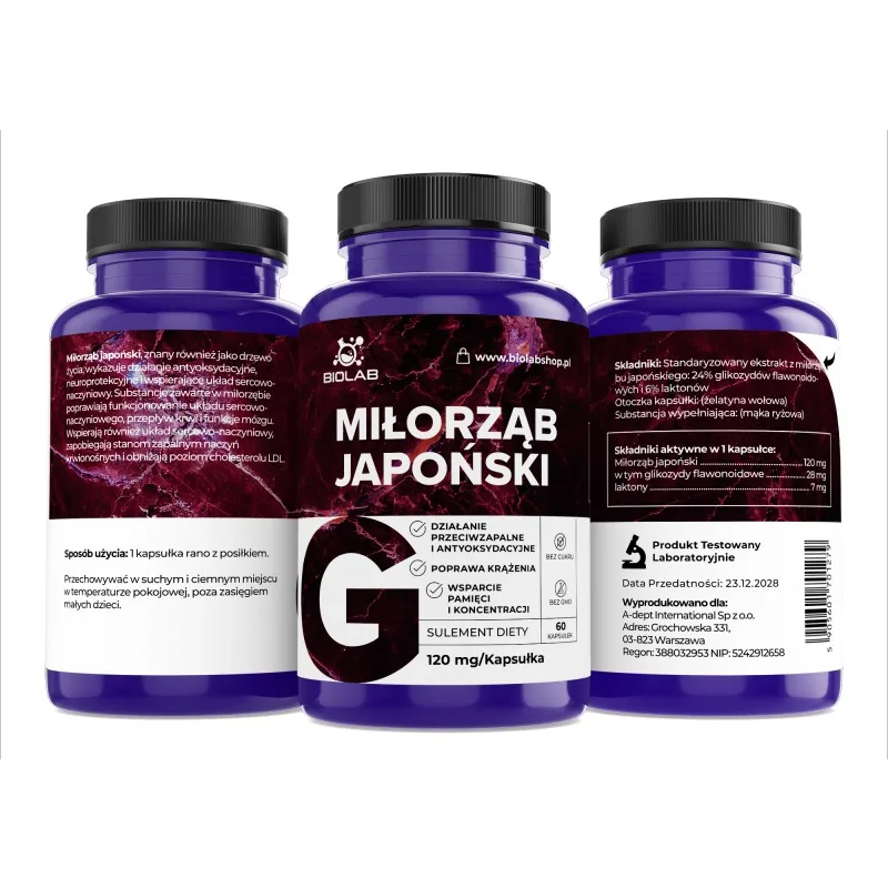 Dabīgs uztura bagātinātājs, kura pamatā ir standartizēts ginka biloba lapu ekstrakts. Katrā kapsulā ir 120 mg ekstrakta, kas bagāts ar aktīvajiem savienojumiem (ginka flavona glikozīdiem un terpēnu trilaktoniem, tostarp ginkgolidiem A, B un C, un bilobalīdu), kas var veicināt sirds un asinsvadu veselību un kognitīvās funkcijas. Paredzēts pieaugušajiem, kuri vēlas atbalstīt koncentrēšanās spējas, atmiņu un audu apasiņošanu.
