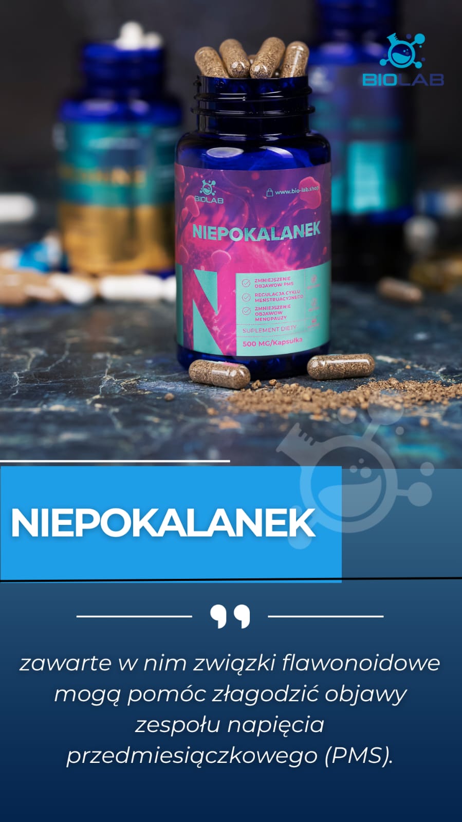 Niepokalanek pospolity (Vitex agnus-castus) to roślina znana i szeroko opisywana w fitoterapii kobiet. Owoce niepokalanka są naturalnym źródłem związków roślinnych, które bywają wykorzystywane w rutynach ukierunkowanych na utrzymanie komfortu i stabilności w różnych etapach cyklu. To propozycja dla osób, które preferują specjalistyczny, roślinny składnik jako element świadomej suplementacji.