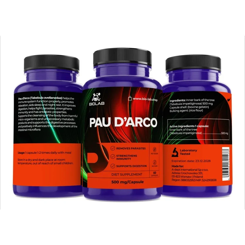 Skład: wewnętrzna kora z drzewa Tabebuia impetiginosa 500mg, otoczka żelatynowa, mąka ryżowa