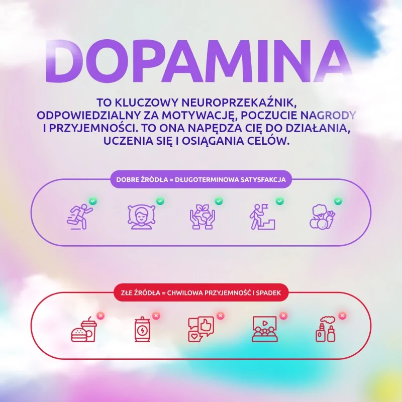 Wymarzony reset dla nerwowego tempa dnia. Dopa Cruise pomaga utrzymać spokój, redukować napięcie i pozostawać czujnym, nawet gdy świat wokół dopinguje bodźcami. Dopa Cruise to zestaw składników wspierających układ nerwowy w sytuacjach stresu i nadużywania stymulantów. Skład łączy witaminy z grupy B, minerały, aminokwasy i naturalne ekstrakty o działaniu relaksacyjnym i stabilizującym nastrój. Produkt może pomagać w redukcji napięcia, poprawie odpływu pobudzenia oraz w utrzymaniu bardziej stabilnej reakcji organizmu na bodźce zewnętrzne.